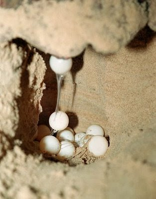Após o nascimento, os filhotes vão para a praia, porém muitos morrem no caminho já que existem aves, lagartos e outros animais a espera para devorá-los. Após estarem na água, tem de passar por outros obstáculos, como peixes e lulas que podem atacá-los. Após crescidos, seus predadores são os tubarões e algumas baleias.